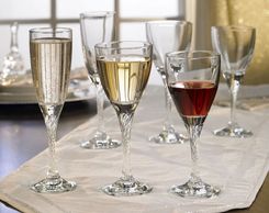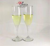 El juego incluye copa para champagne, agua y vino
