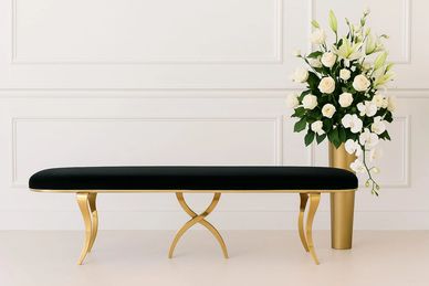 Luce en tu ceremonia, este hermoso Divan de acero inoxidable para 2 personas , con asiento negro y patas doradas