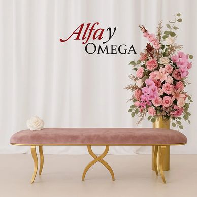 Luce en tu ceremonia, este hermoso Divan de acero inoxidable para 2 personas , con asiento dusty pink y patas doradas