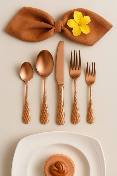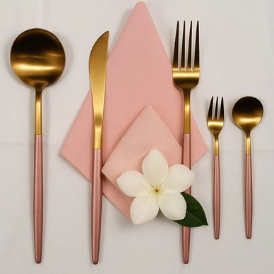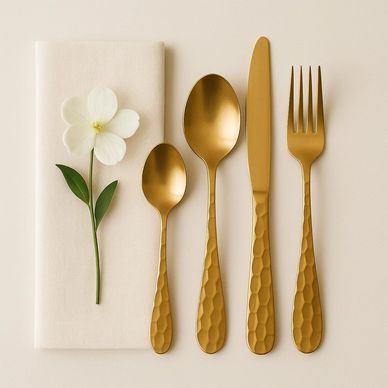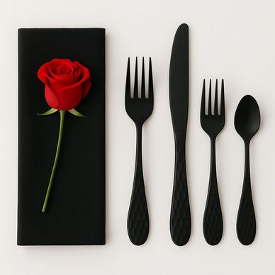 Un set de cuberteria en negro y dorado que refelejan elegancia y distinciòn. Ideal para mesas VIP que buscan un acabado sofisticado y memorable.