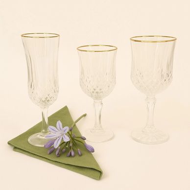 Cristalerìa elegante con delicados detalles tallados y borde dorado